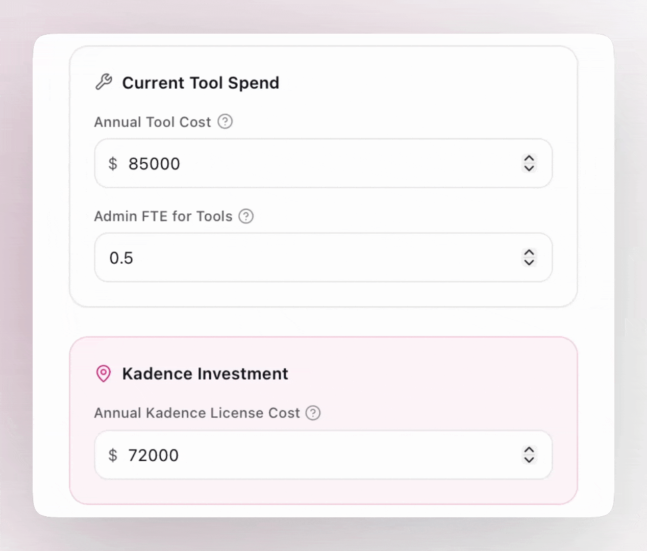 The third stage evaluates your current workplace technology environment against projected Kadence investment. Inputs include: