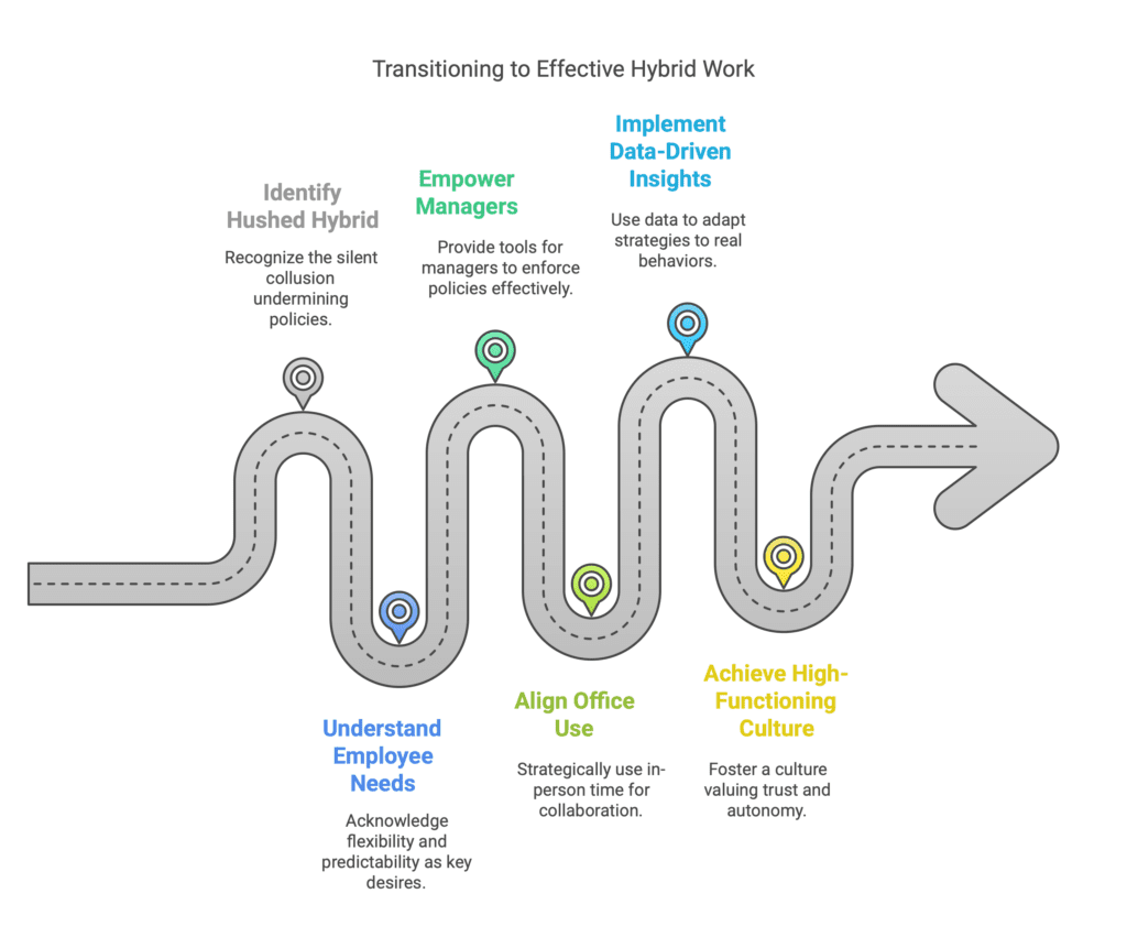 Hushed hybrid is the natural result of leadership saying one thing while managers do another. It’s not sustainable—and it’s not strategic.