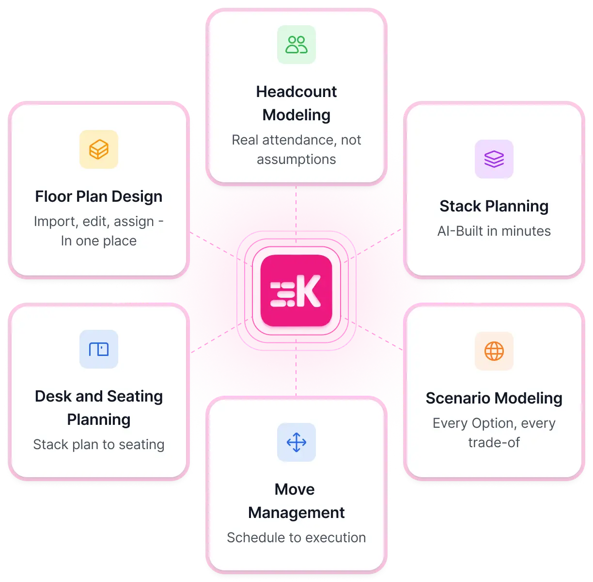 The plan you approve is the plan that executes — automatically applying desk assignments, neighbourhoods, and floor configs in Kadence.The Only Platform Where AI Meets Execution