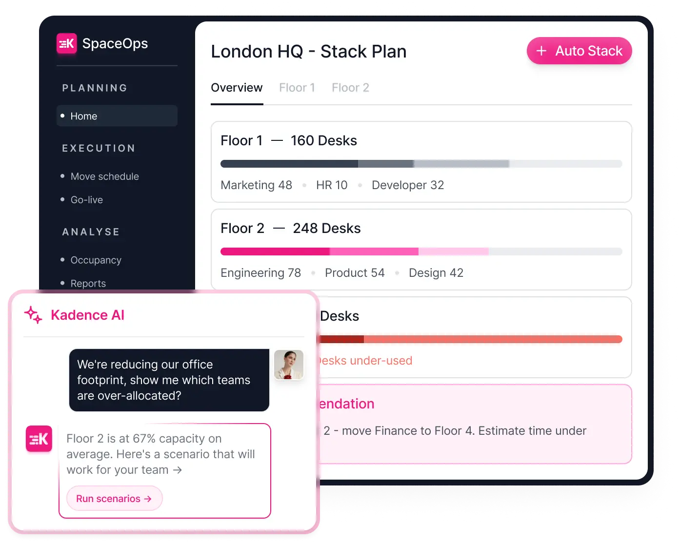See how SpaceOps uses AI to turn your raw data into into an optimized, actionable workspace plan, no lengthy cycles, no guesswork.